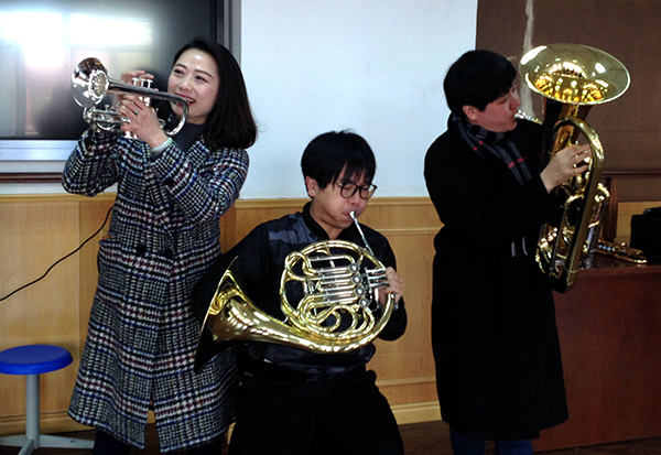 自音乐教研组小号专业教师陈力新开设“管弦乐队中常见乐器”讲座后,组内教师纷纷表示对西洋乐器有了很大的学习兴趣,并大力呼吁想尝试西洋乐器的实践与体验。