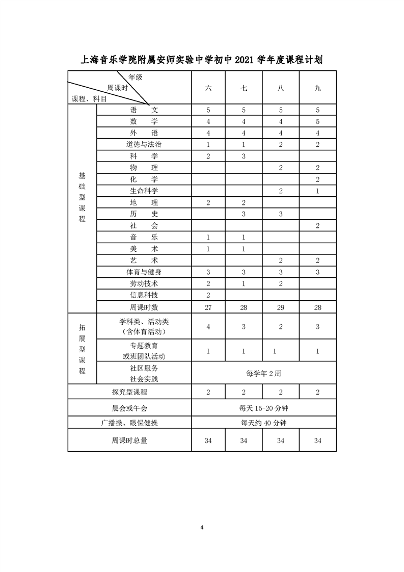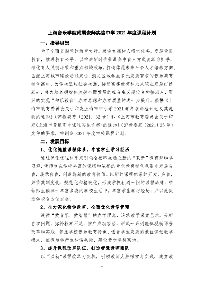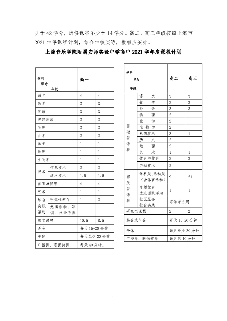 上海音乐学院附属安师实验中学2021学年度课程计划